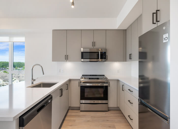 Choose from our comfortable 1 and 2-bedroom apartments, with 1-bedroom units starting at an affordable monthly rent of $1,850. At Aspire, you’ll enjoy the luxury of 9 or 12-foot ceilings, modern cabinetry, quartz countertops, a stainless appliance package, under-mount sinks, full tile backsplash, and vinyl plank flooring.